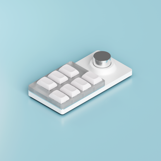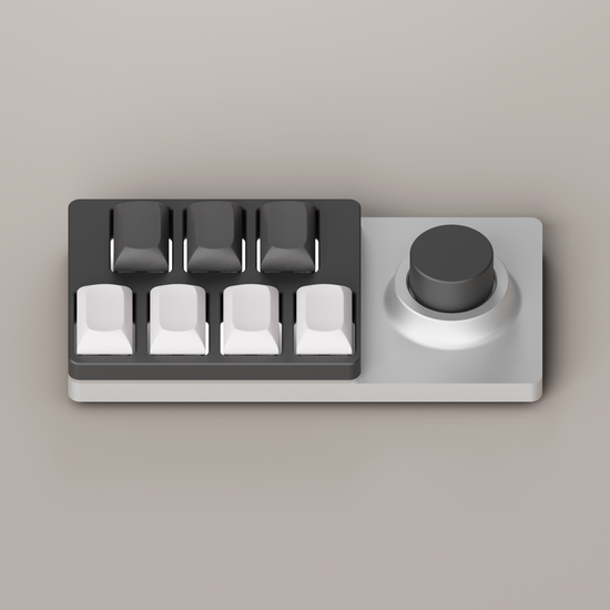 The Synth Labs Solo is a 7-key macropad with a rotary encoder, inspired by beatmania IIDX controllers and modern record players.